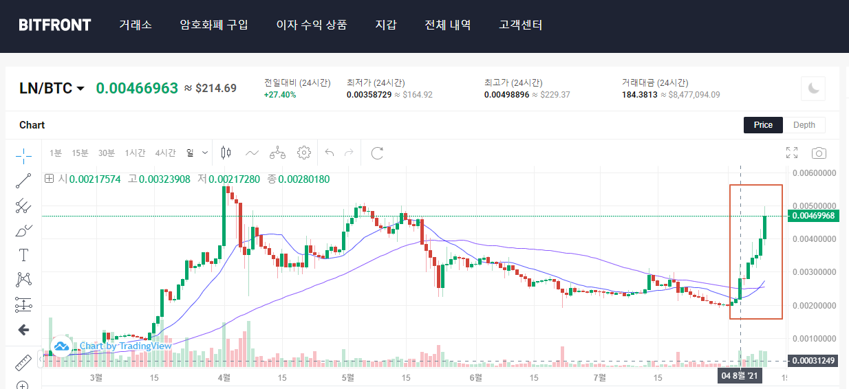 지난 5월에 네이버의 일본 자회사인 라인에서 2021년 블록체인 사업 계획을 공개하며 신규 거래소에 상장 하는 것을 오피셜하게 공개했는데요. 얼마 전 8월 초부터 갑자기 링크코인이 급상승하기 시작했습니다.