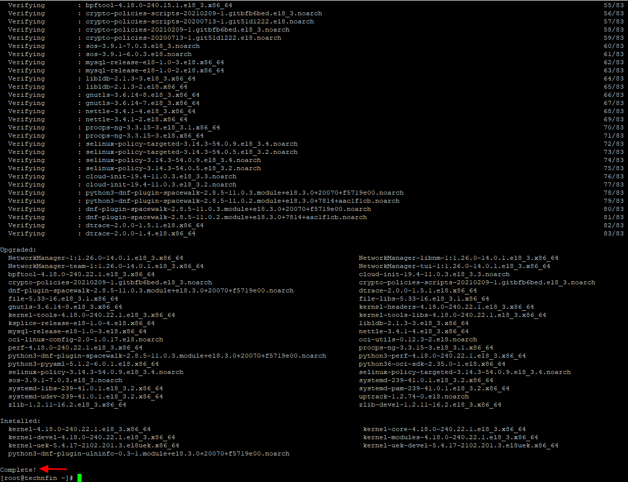 잠시 후 Complete! 메세지가 나오면 업데이트가 완료 됩니다.