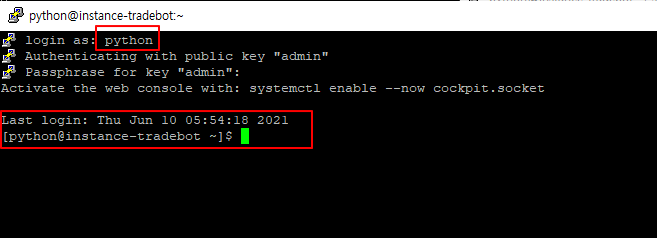 PuTTY를 이용해 사용자 계정으로 직접 로그인이 가능해 졌습니다.