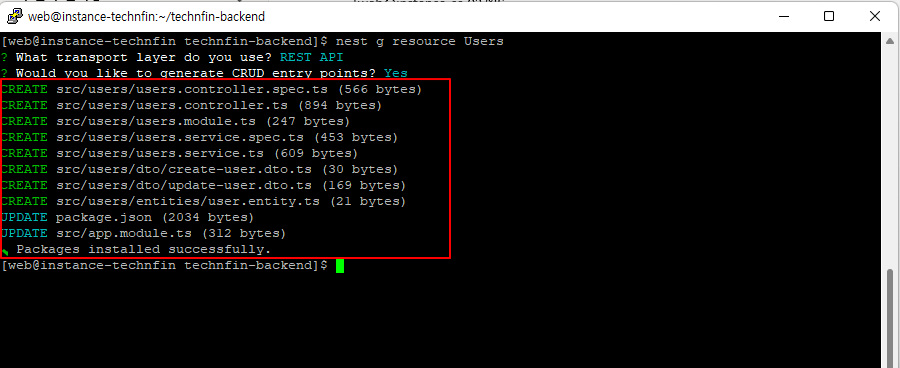 1. NestJS의 리소스 생성 기능을 활용해 자동으로 모듈 단위 구조를 편리하게 만들 수 있습니다.