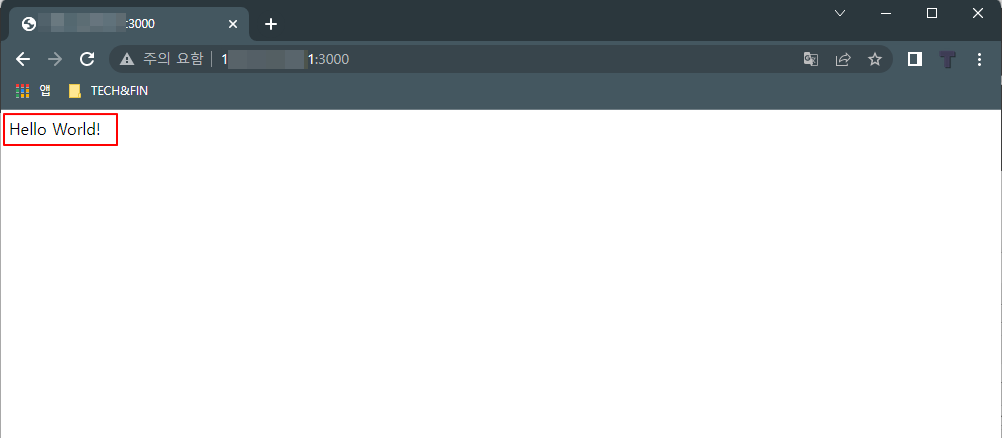 작업중인 로컬PC(외부)에서 접속하여 어떤 화면이 나오는지 확인해 보겠습니다. 접속하는 방법은 운영하고 있는 서버의 공인IP와 3000포트를 웹 브라우저에 입력하면 됩니다.