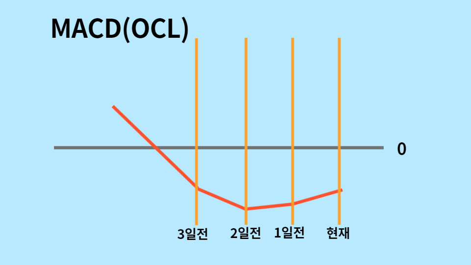 # MACD(OCL) : 3일전 < 0, 2일전 < 0, 1일전 < 0, 3일전 > 2일전, 1일전 > 2일전, 현재 > 1일전