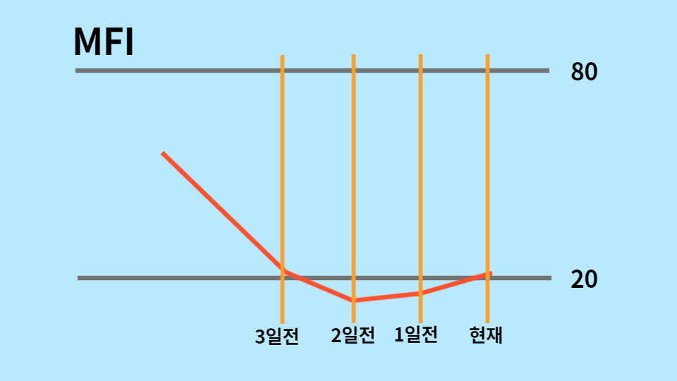 # MFI : 2일전 < 20미만, 3일전 > 2일전, 1일전 > 2일전, 현재 > 1일전