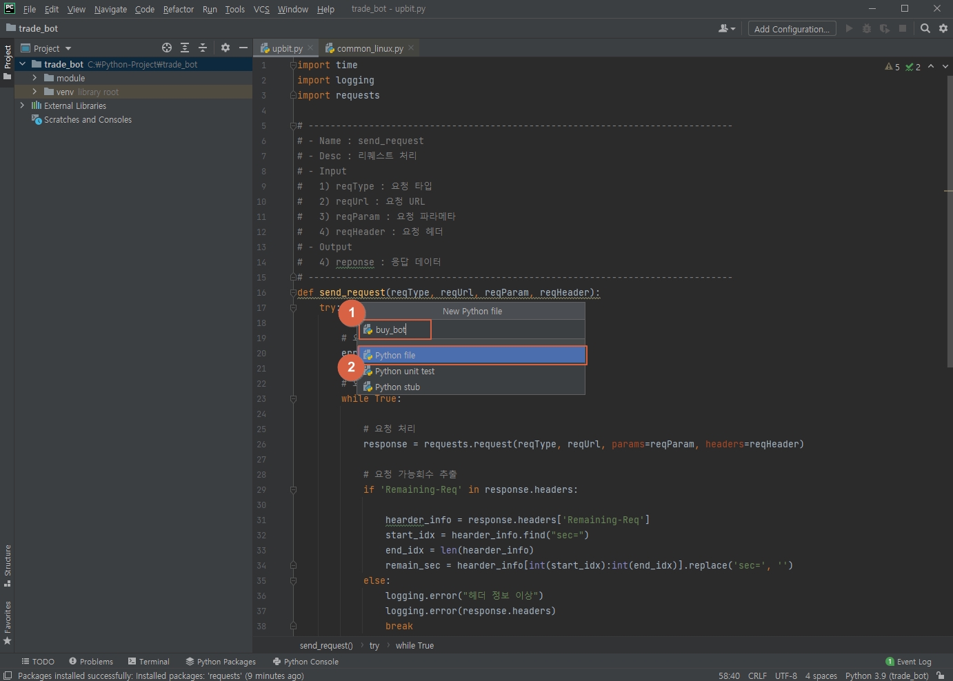 ① 모듈 이름 : upbit 라고 만들도록 하겠습니다.