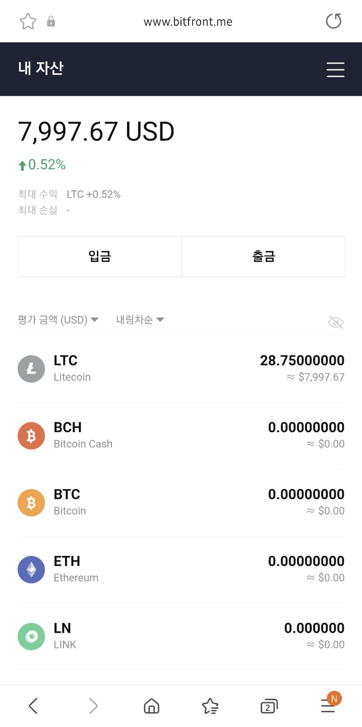 링크코인은 국내 거래소에서 거래되지 않기 때문에 해외 거래소인 비트프론트 거래소를 이용해야 합니다.