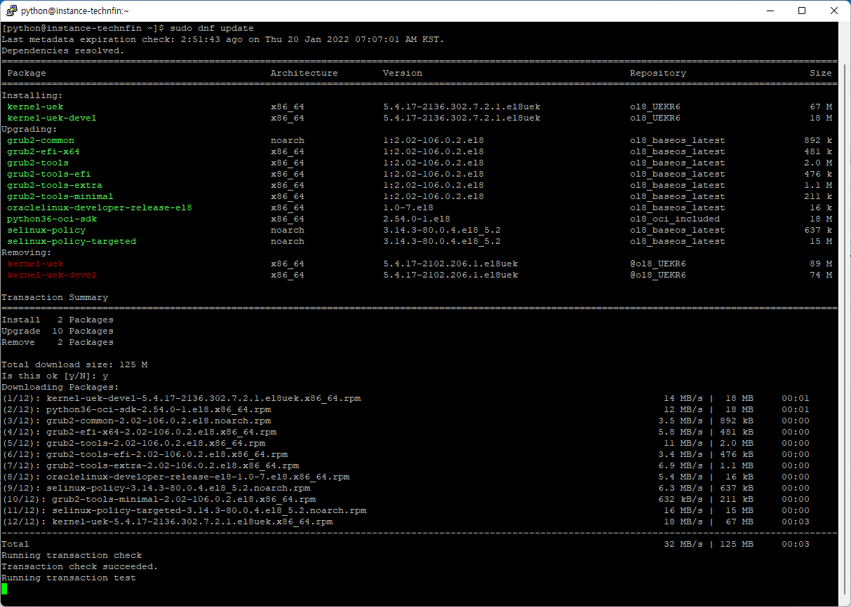 반드시 필요한 작업은 아니지만 서버의 OS 모듈을 최신화 시켜 놓는 것이 좋기 때문에 위 명령어를 사용하여 업데이트를 합니다.