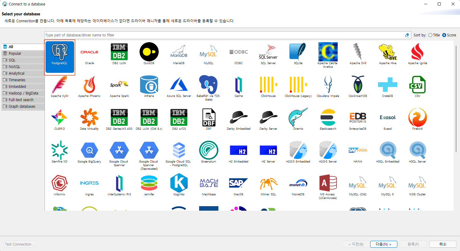 PostgreSQL을 선택하고 다음을 클릭합니다.