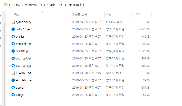 JDBC 드라이버가 있는 폴더에는 위와 같은 파일들이 존재하면 됩니다.