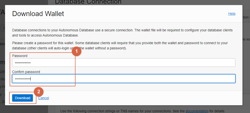 외부에서 접속할 때 월렛이라는 것을 사용할 건데요. 월렛을 다운로드 받기 위해 ① DB Connection을 클릭합니다.