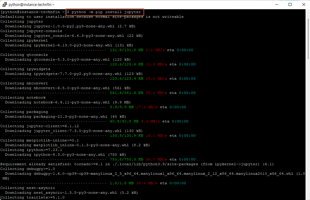 리눅스 환경에서 설치하는 방법은 간단하며 파이썬은 미리 설치가 되어 있어야 합니다. 리눅스 환경에서 파이썬 3.9 버전 설치는 아래 포스팅을 참고하시기 바랍니다