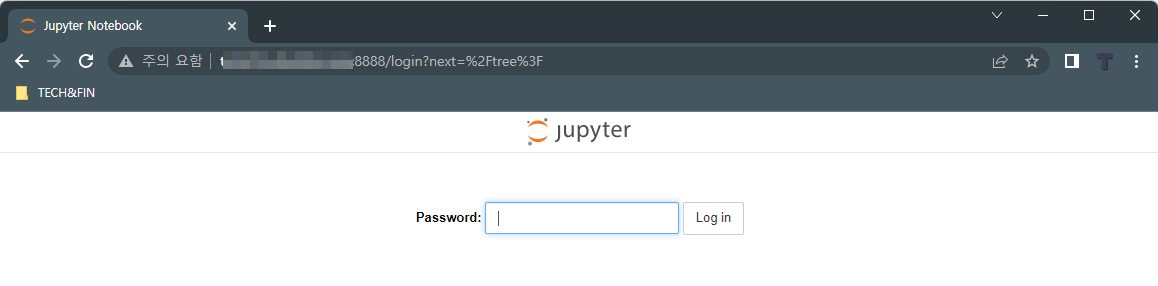 외부에서 브라우저를 통해 http://리눅스서버의공인아이피:8888 로 접속하면 로그인 창이 나타나게 됩니다.