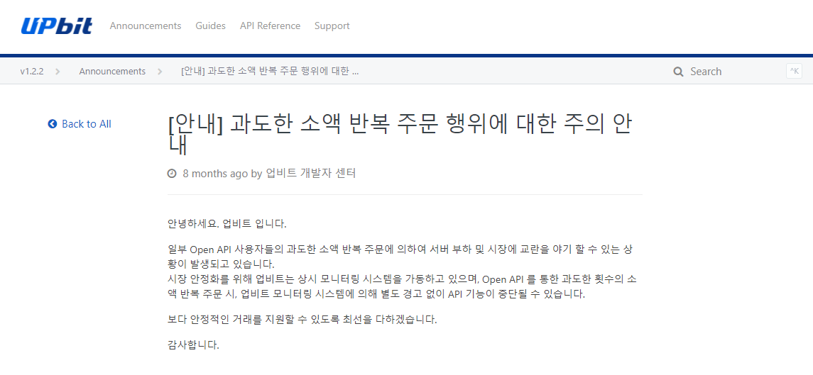 호가창 흔들기는 시장 교란행위에 해당되므로 과도하게 사용 시 업비트 API 이용이 제한될 수 있습니다.