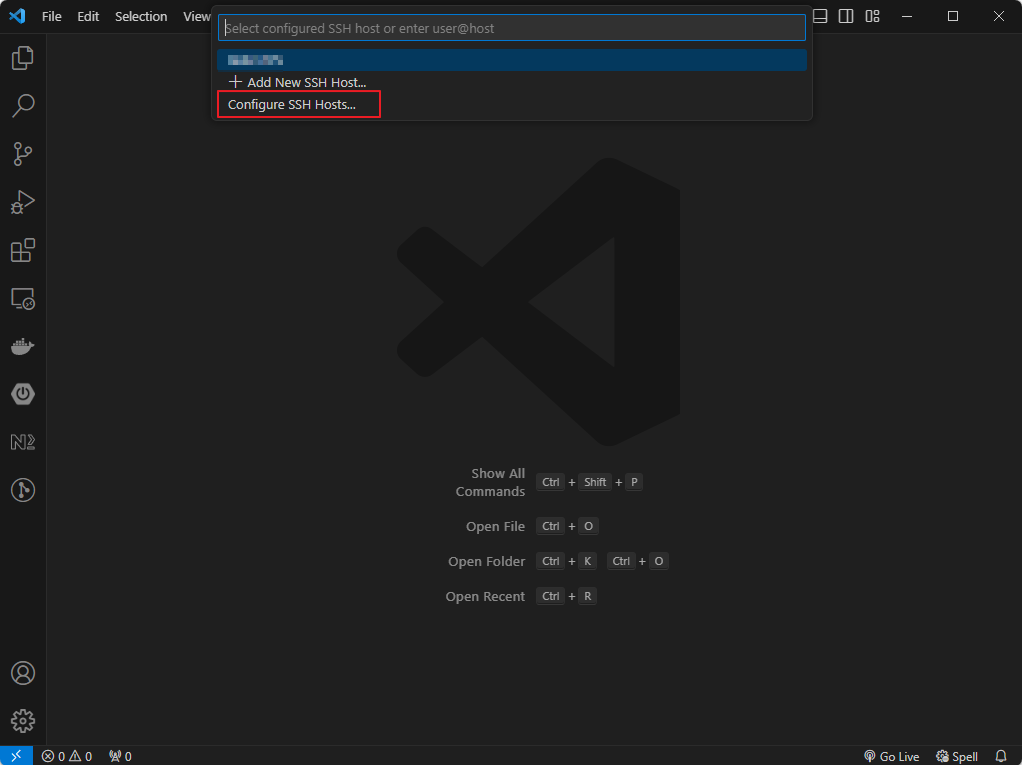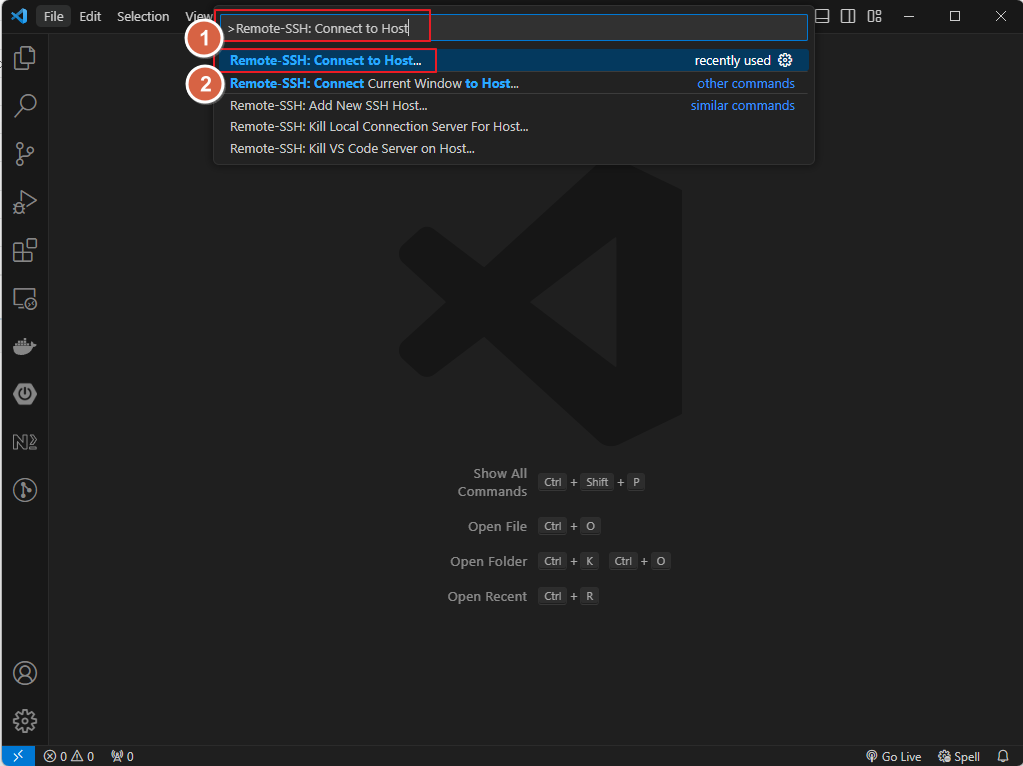 ① Command Pallette 에서 Remote-SSH: Connect to Host를 검색하여